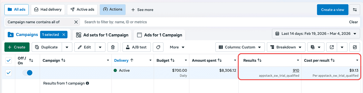 With trial_qualified, the algorithm finally gets a clean picture of what a high-intent user looks like. Volume of conversion events goes down slightly because we're filtering out the noise, but signal quality goes up significantly. That means better bidding decisions, lower CPAs, and higher ROAS over time.